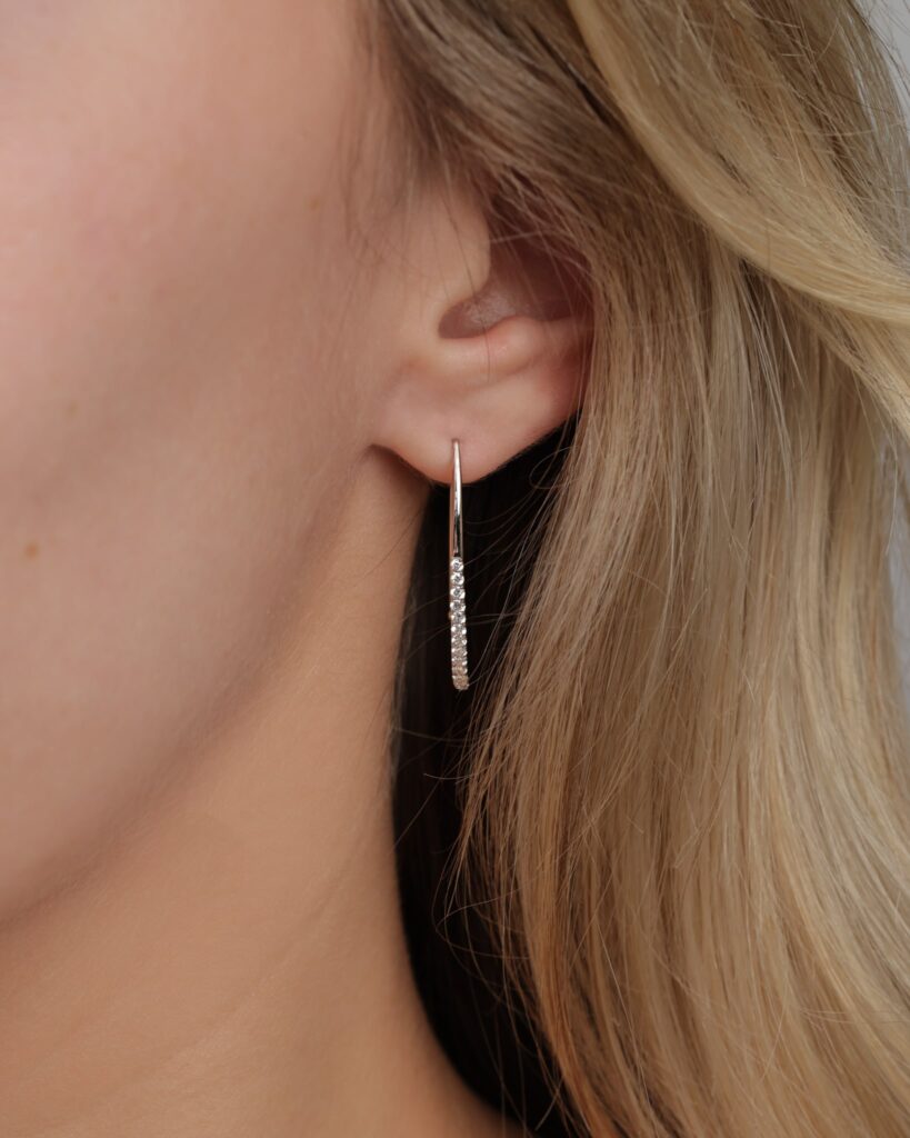 Our slim open-end long drop earrings are a stunning pair designed to add a touch of elegance and confidence to any outfit.